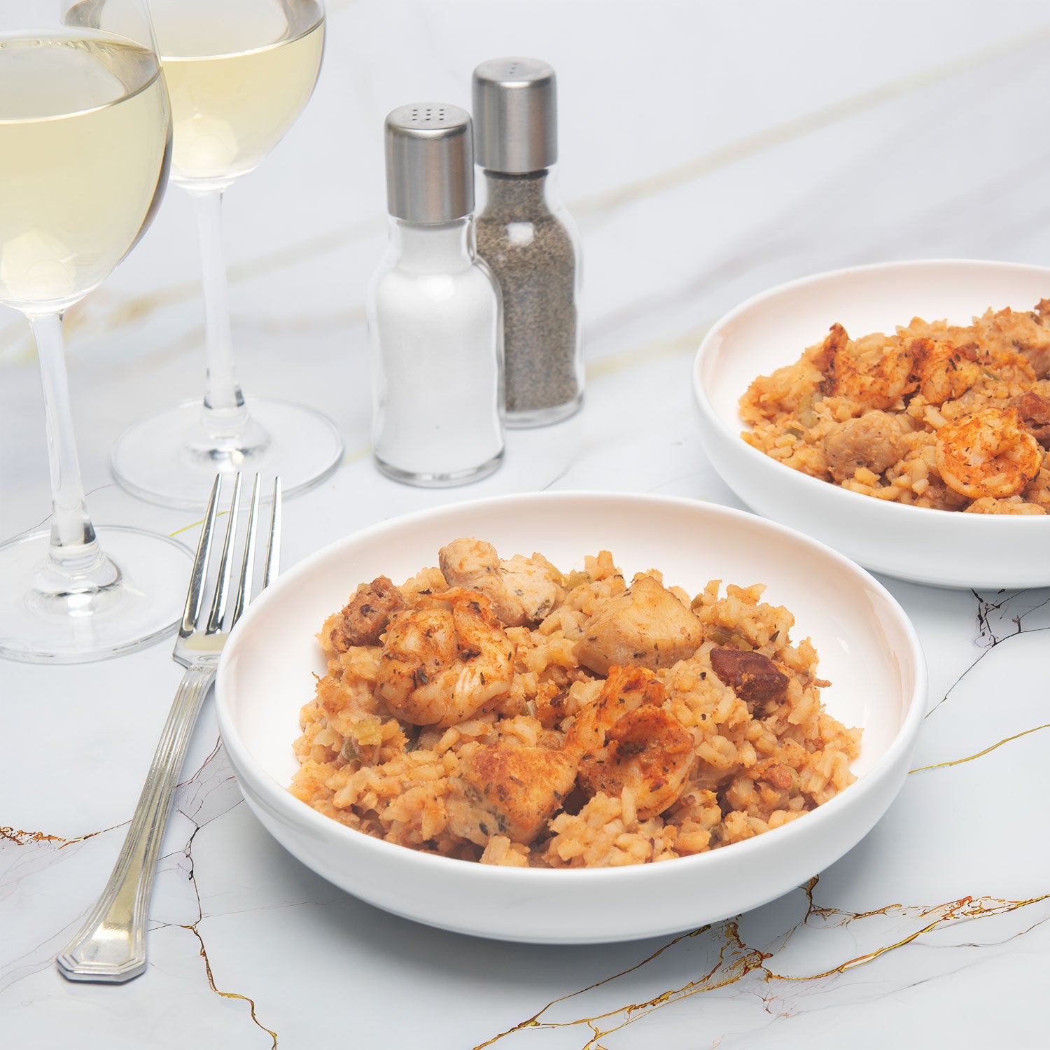 Ingredients: Long grain rice, chicken breast, La San Marzano tomatoes, Spanish onions, celery, green peppers, dry cured chorizo sausage, chicken broth (chicken broth [water, concentrated chicken broth], salt, sugar, yeast extract, chicken fat, corn starch, citric acid, natural flavour), paprika, garlic powder, onion powder, ground black pepper, garlic, jalapeños, white pepper, oregano, cayenne pepper, thyme