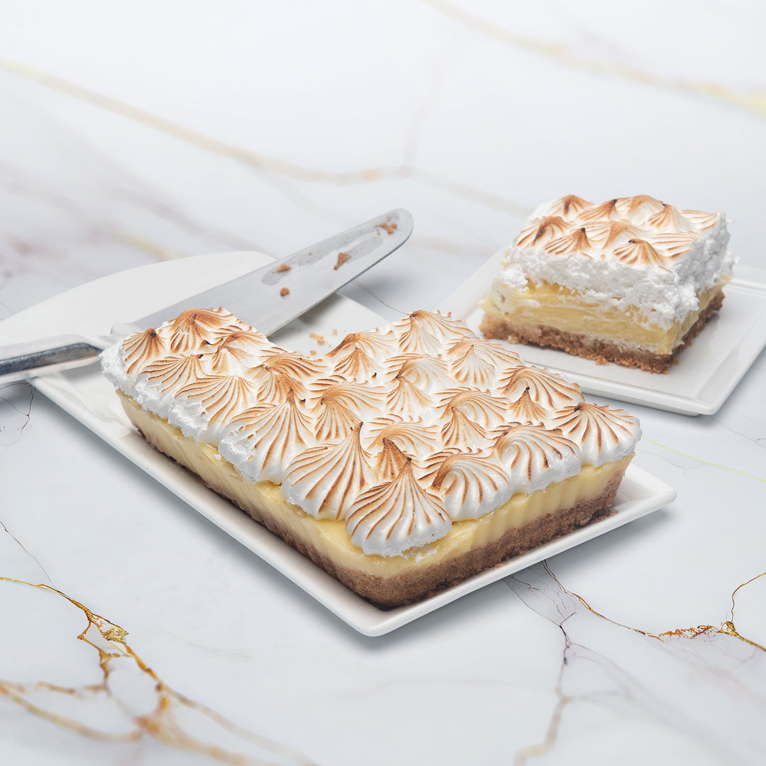 Ingredients: Key lime curd (lime juice, sugar, butter, eggs, lime zest, cornstarch), crust (graham cracker, butter, sugar), meringue (sugar, egg whites)